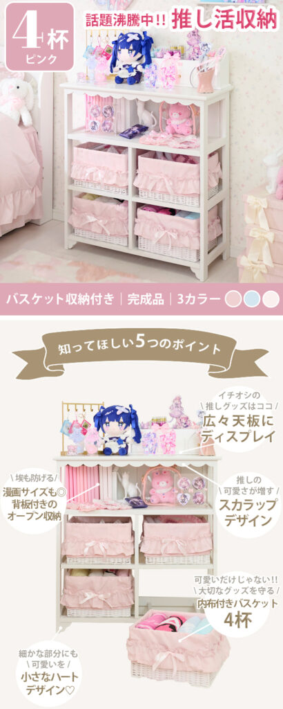 商品詳細:フリルバスケットチェスト(4杯・ピンク)/fille(フィーユ)商品番号 r-p_0008806